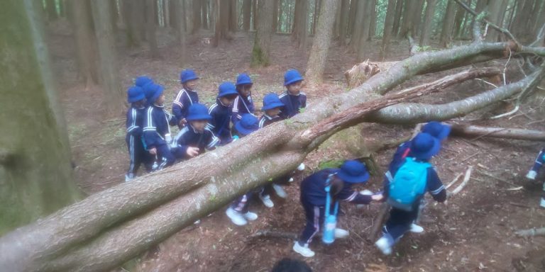林間学校2班 2班 1・2年2日目 本日は朝からあいにくの霧雨でしたが、時折雨が上がり、晴れ間も見えることも…
