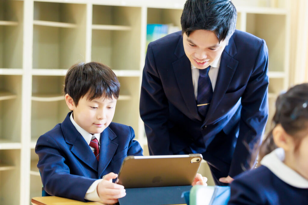 子どもたちの興味・関心に応えるため、専科制を導入しています。理科・音楽・図工・ICTなど専門性の高い授業を専科教員が担当し、より深い学びと多様な視点を提供します。さらに、1年生から英語を週2時間以上実施し、言葉に親しむ力や「聞く・話す」力の土台も育てます。こうした学びを通して、子どもたちはそれぞれ得意な分野を見つけ、学ぶ意欲を高めていきます。安心できる環境で挑戦心を引き出し、専科制と担任によるきめ細やかなサポートで、基礎学力を身につけながら探究心や創造力を育みます。