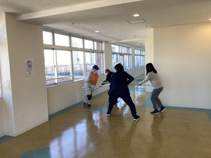 そこで、不審者侵入時に安全な行動を取れるようにし、危険から身を守る意識を持たせるために、防犯訓練を実施しました。