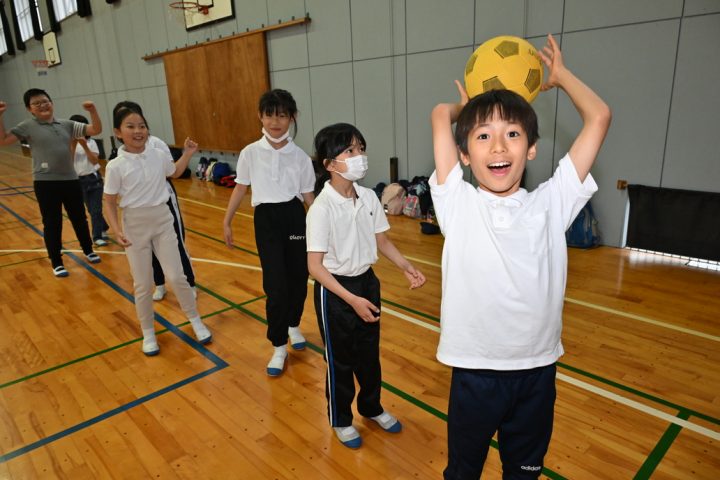 その後、雨天のため、室内で、学年ごとに体育館でレクリエーションや、理科の実験などいくつかのプログラムを行いました。