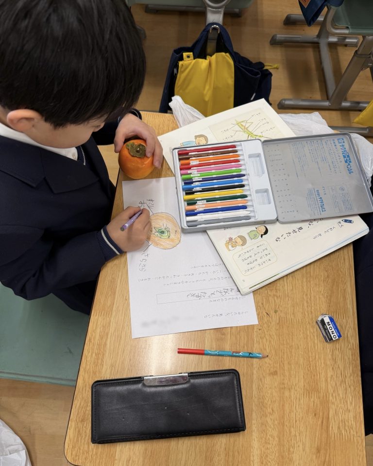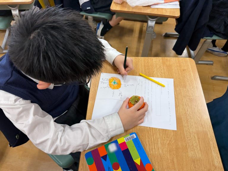 今日は、その気づきや驚きを 言葉と絵にして伝える授業を行いました。