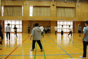 童心にかえり、卒業生同士でドッチボールをしている様子です。