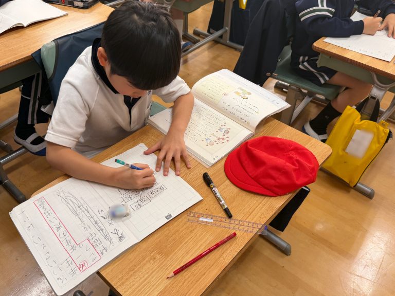 題名を書き、1マス空けて書き始めるなど、作文の書き方も、もうしっかり身についています。