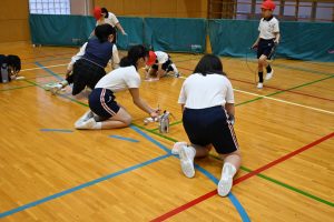 朝の会では担任の先生に背中を押され、「一回でも多く、1秒でも長く」 をめざして、最後まで諦めずに頑張ろうとエンカレッジ(励まし)を受け気持ちを高めました。