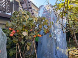冬へ向かう季節の中でも、枝にしっかりと残った柿が実っていました。
