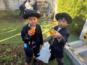 友達と形や色を見せ合ったりしながら、柿は大切に扱われていました。