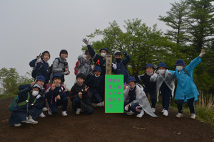 第2日目、事前の天気予報では曇りから晴れでしたが、朝から小雨がぱらつく状況でした。5年生にとっては最後の林間学校ですので、何とか登山は行かせてあげたいという教員の思いで、雨の合間を見て出発しました。二学年で平尾山を目指しました。新緑の中を歩く心地よさを体感しながら、雨具を使用しながらも木々に守られ登山を進めました。歯を食いしばって自分の足でしっかり上っていく子どもたちを見ていると、やはり来てよかったと思わされました。平尾山頂上で、再び選択を余儀なくされました。昼食をここでとるか宿舎に帰って食べるか、登山を続けるか引き返すか…。霧に覆われていたなか山頂から、ほんの少し山中湖が見えたときに子どもたちから歓声が上がりました。霧も少し晴れたため、頂上で昼食のおにぎりをみんなでほおばったあと、5年生の希望者のみ予定の石割山山頂を目指し、他は宿舎に戻ることになりました。石割山に行った児童は、とてもきつい道を登りきったため、下山したときに目標を達成できた満足感で顔がかがやいていました。