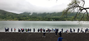 雨天のため4年生の昼食はバスでとらなければならない状況でしたが、宿舎のリゾートイン愛さんのご厚意で体育館をお借りして昼食をとることができました。5生は予定通り5合目で昼食を取り、宿舎のリゾートイン愛さんへ到着。二学年そろって開校式をし、品川翔英セミナーハウスを経由し、山中湖畔に散策に出かけました。