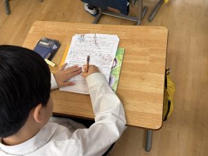 国語では、本文に自分で考えたことを書き込みながら読み進めることができるようになってきました。