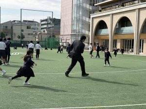 冬の寒さの中で動き続けてたくわえた力は、桜とともに花開きます。 春の校庭に立つ、新しい学年の児童の姿を思い描きながら 今日もまた、児童と一緒に校庭で遊びます。