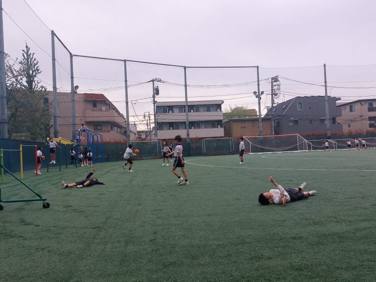 児童達は、寝転がって遊んだり、校庭中を駆け回ったりしています。