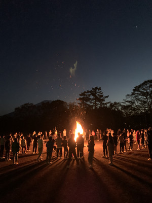 夜はみんなでキャンプファイヤーをしました。