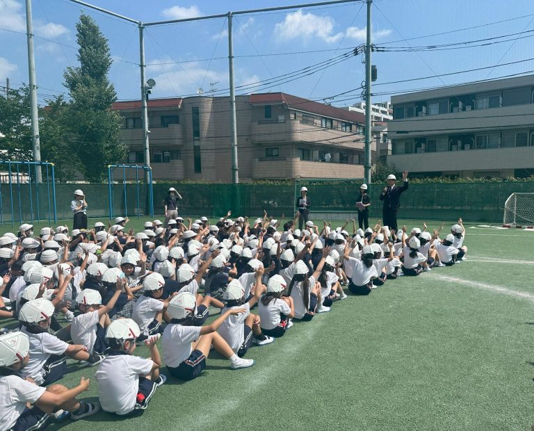 避難開始から全員が速やかに校庭へ避難し、安全を確認することができました。訓練後には、「自分の命を守るために行動することの大切さ」についてお話があり、児童たちも真剣に耳を傾けていました。