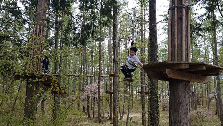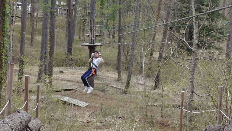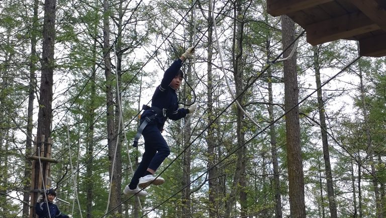 子どもたちは果敢に難しいコースへ挑戦しました。途中、思うように進めず心がくじけそうになる場面もありましたが、振り返れば仲間の姿がありました。互いに励まし合いながら、さまざまな方法を試し、一つひとつ課題を乗り越えていきました。最後のジップラインを終えたときには、やり遂げた達成感に満ちた、誇らしい笑顔が見られました。