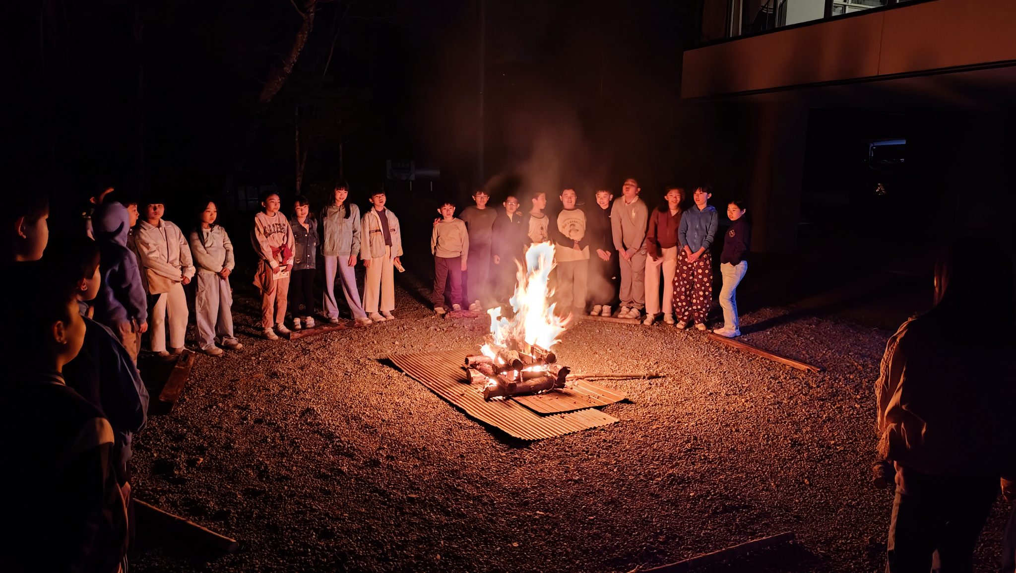 本来であればキャンプファイアーは翌日の夜に実施する予定でしたが、天候が心配されたため、急きょ1日目に行いました。実行委員の児童たちが上手に全体を盛り上げ、楽しく温かなひとときとなりました。子どもたちにとっても、きっと忘れられない時間になったことと思います。