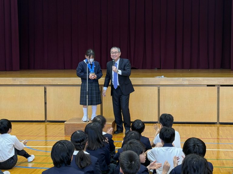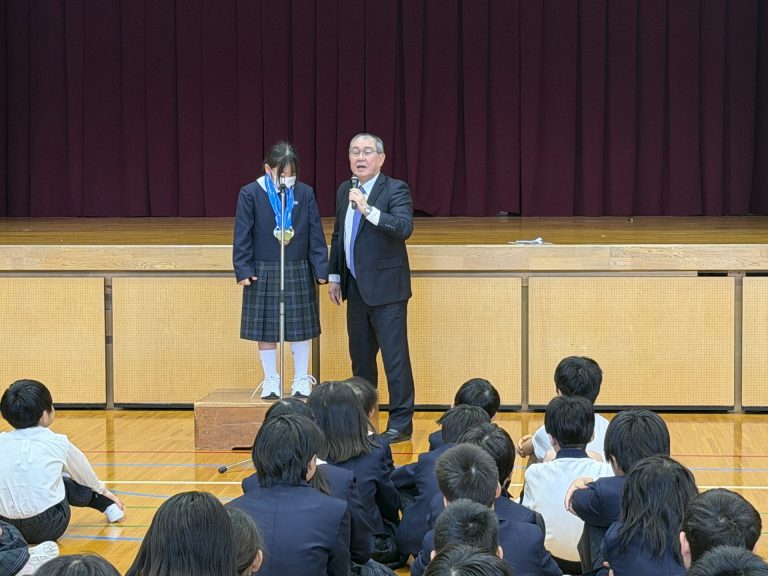 「まずは好き嫌いをせず、さまざまなことに挑戦してみましょう。取り組む中で好きなことが見つかります。」と児童に向けてメッセージを送りました。