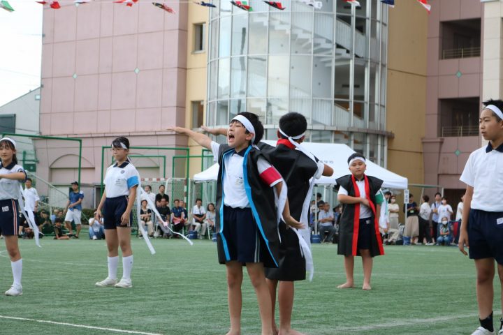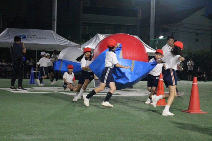 今年度は、暑さを考慮して初の夕方からの開催となりました。夜はライトに照らされながら、子どもたちは精一杯に競技や演技に取り組みました。
